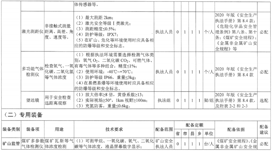 應(yīng)急管理部科技和信息化司日前發(fā)布《應(yīng)急管理綜合行政執(zhí)法裝備配備標(biāo)準(zhǔn)(征求意見(jiàn)稿)》,在應(yīng)急管理綜合行政執(zhí)法裝備配備表中,將礦用音視頻記錄儀(礦用執(zhí)法記錄儀)列入裝備表。
